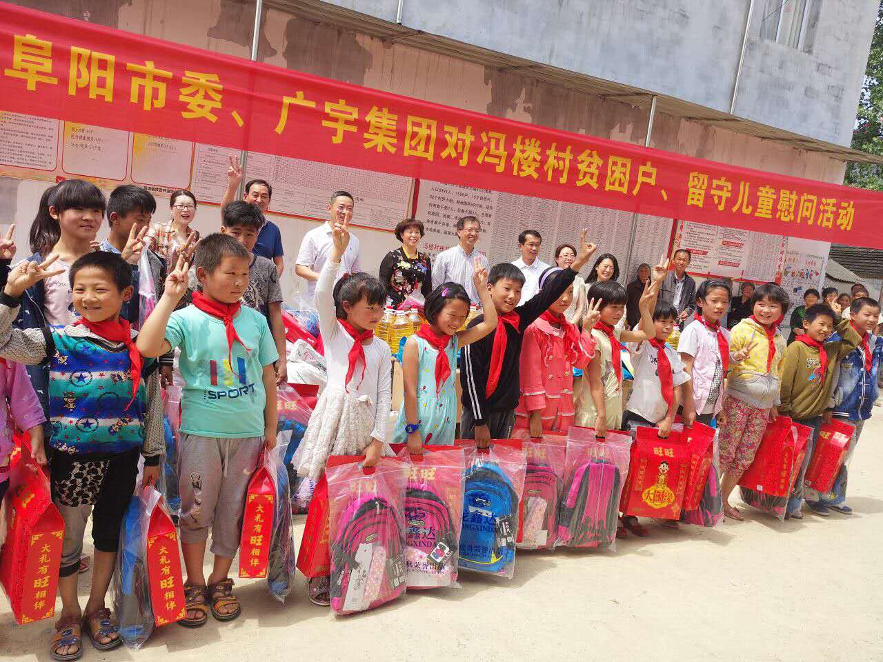 為踐行“誠信立業(yè),造福社會”的企業(yè)宗旨,2017年5月25日上午,“端午”、“六·一”雙節(jié)來臨前夕,在民建阜陽市委負責人張永俠、吳永利,阜陽市扶貧辦張峰,集團董事長張濤的帶領下,集團公司職工組成慰問團前往臨泉縣文塘鎮(zhèn)馮樓村進行“扶助貧困家庭,關愛留守兒童”慰問活動。