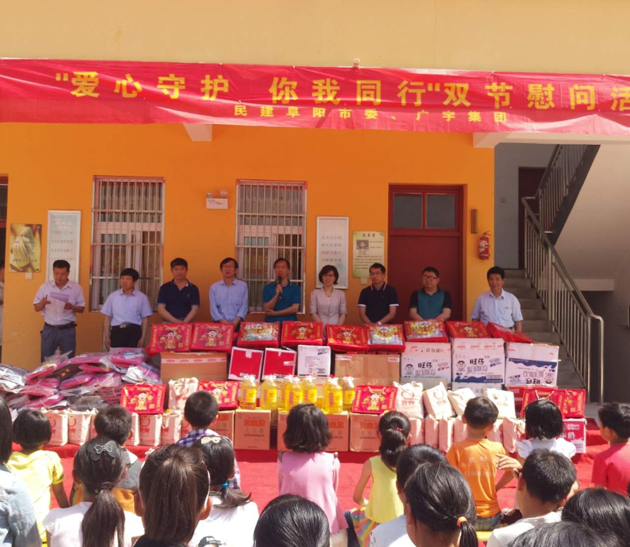 時值“端午”、“六·一”雙節(jié)前夕,在民建阜陽市委吳永利主委,集團董事長張濤的帶領下,廣宇一行人又一次來到了“西湖鎮(zhèn)廣宇湯莊希望小學”,為同學及老師們獻上節(jié)日禮物。出席本次活動的有潁州區(qū)紀蘭芳副區(qū)長、教育局白莽局長、西湖鎮(zhèn)有關領導。