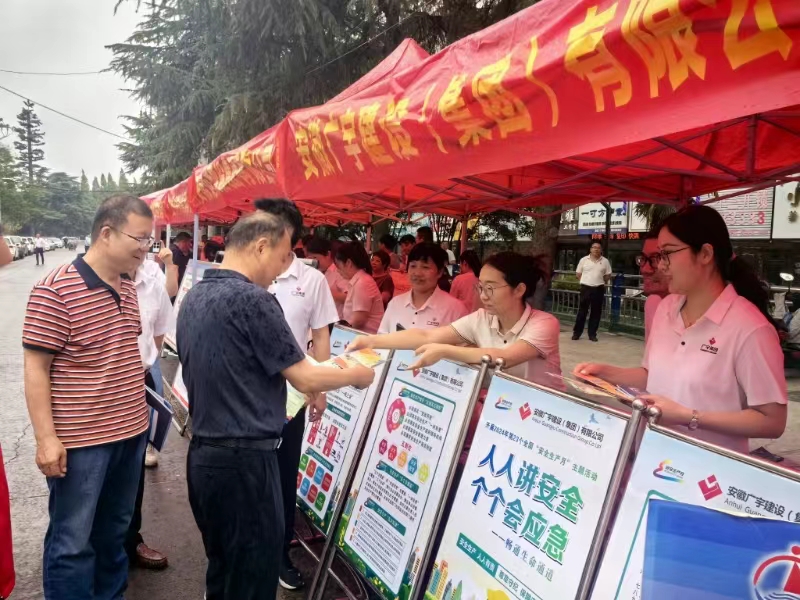 2024年6月是全國第23個安全生產(chǎn)月,6月16日上午,按照市城鄉(xiāng)建設(shè)局、市建筑業(yè)管理處統(tǒng)一安排,由市建協(xié)精心組織,集團公司在阜陽市永昌路市城鄉(xiāng)建設(shè)局東側(cè)開展了以“人人講安全,個個會應(yīng)急——暢通生命通道”為主題的安全宣傳咨詢?nèi)栈顒印?/span>